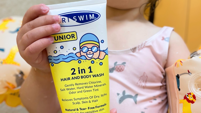 A revolution in after-swim protection of delicate kids' skin: The first natural & tear free anti-chlorine Body Wash for children removing pool chemicals from the body and hair is out now!